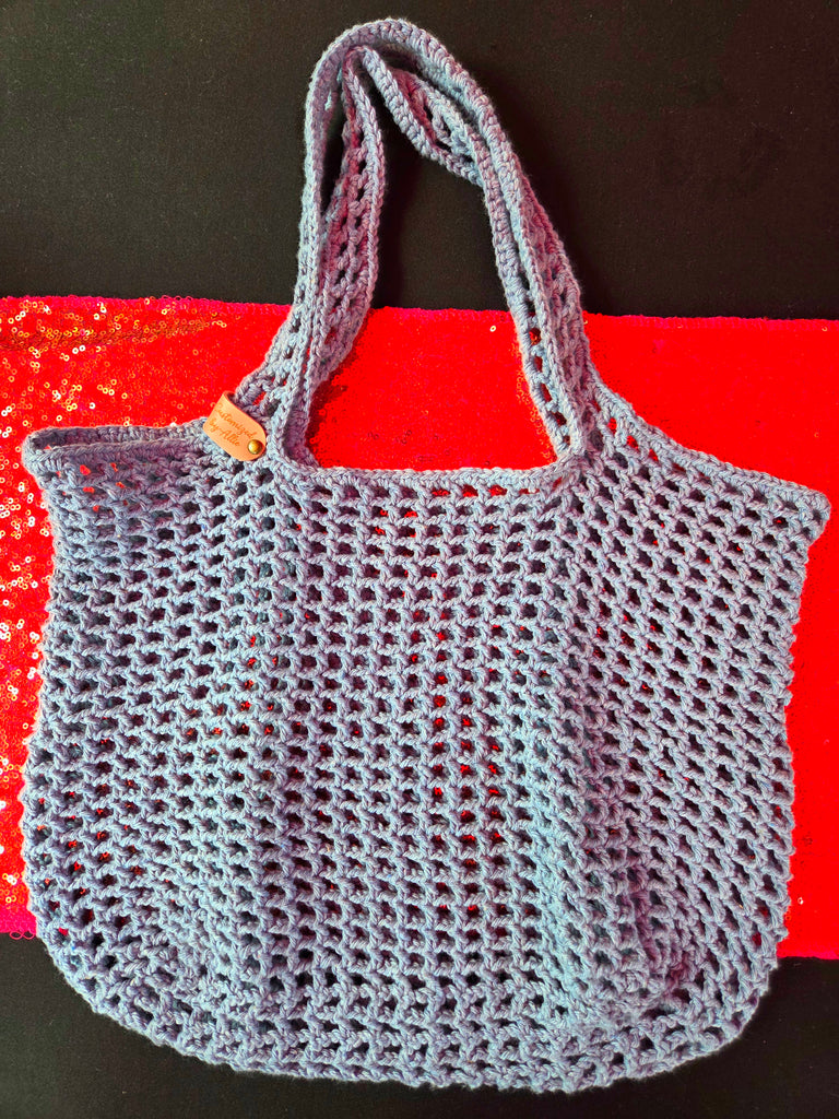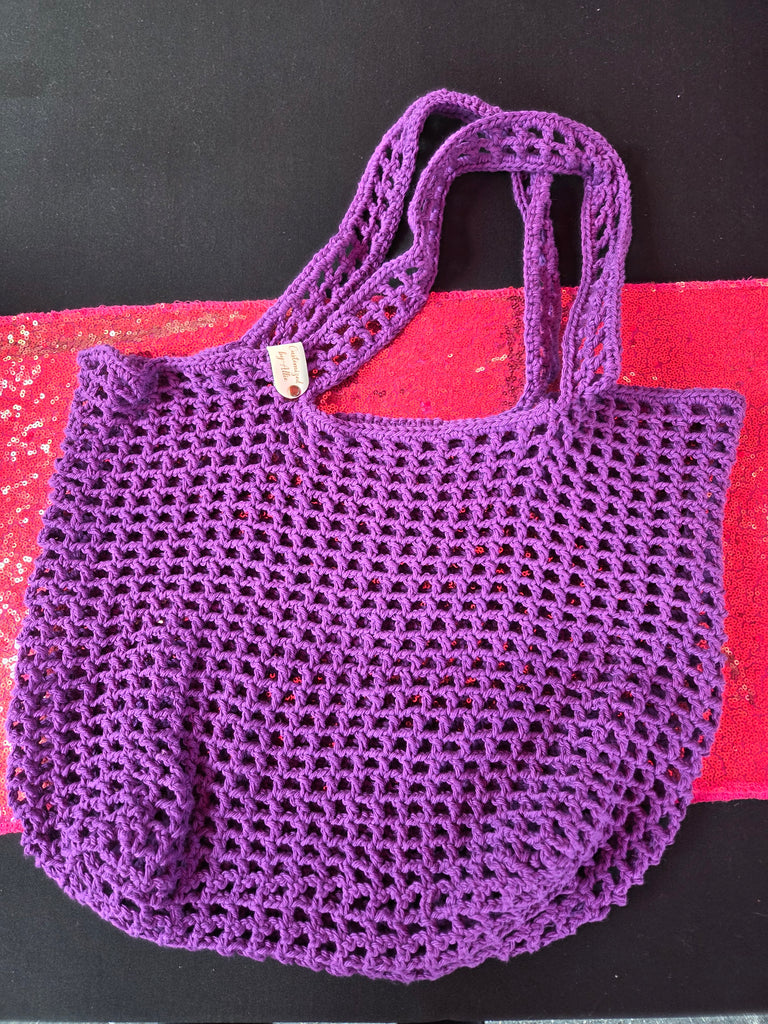 Handmade with love, these colorful crocheted tote bags are the perfect blend of style and functionality. Tote bag is made of 100% cotton yarn. The bag will stretch as you put your items in but will return to its original shape when empty. Machine wash and dry to keep clean.